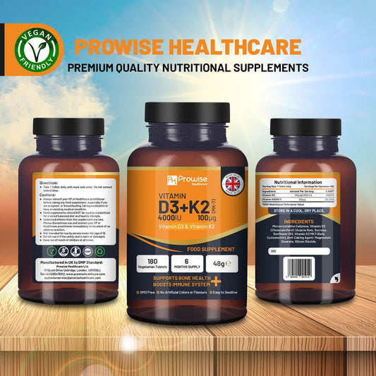 Organic Vitamin D3 4000IU + K2 MK7 100μg Vegetarian 180 Tablets I High Strength